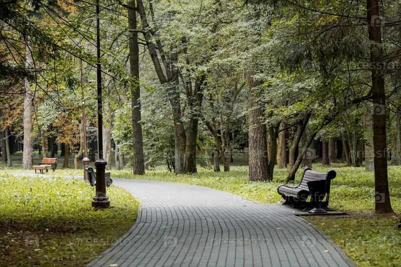 Минск, парк Челюскинцев. Аллеи парка с отдыхающими. Республика Беларусь