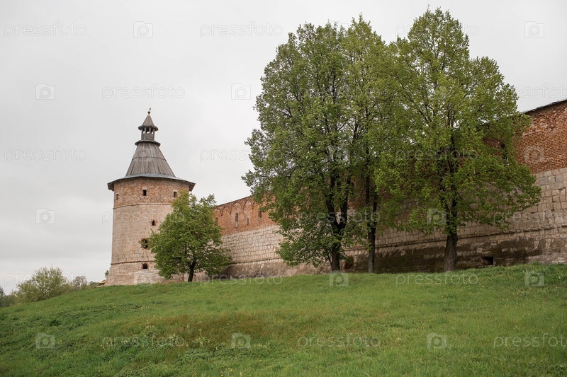 Стены и башни Зарайского кремля. История средневековых укреплений. Город Зарайск, Московская область, Россия