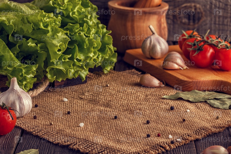 Овощи, травы, специи фон. Выборочный фокус