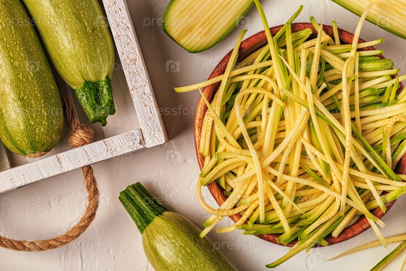 Сырая паста из кабачков на белом фоне