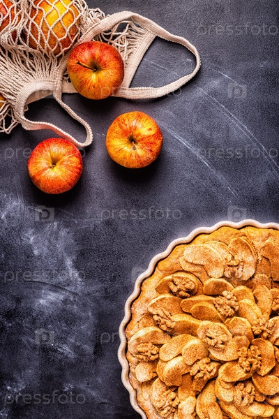 Яблочный пирог с грецкими орехами и корицей