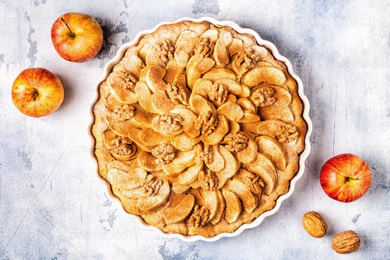 Яблочный пирог с грецкими орехами и корицей
