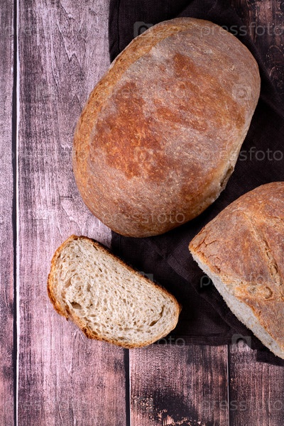 Ржаной хлеб на закваске без дрожжей. Кусок домашней выпечки. Вид сверху