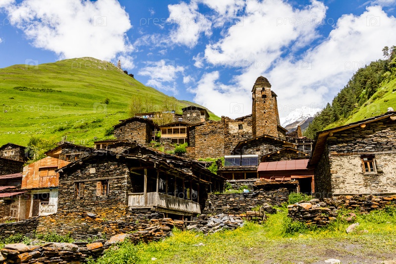 Старое горное село Дартло, Тушетинский район, Грузия. Дома построены из сланцевых камней, древней кладки. Кавказские горы