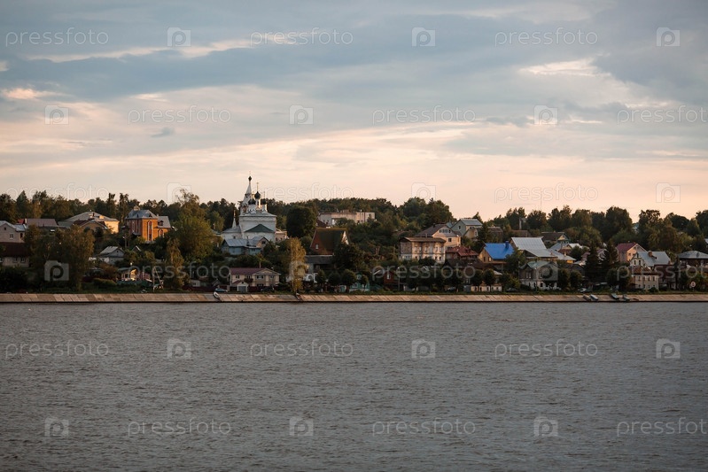 Россия. Кострома. Вид на историческую Заволжскую часть города Костромы с Волги летним вечером