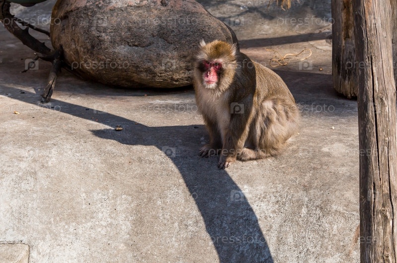 Японская снежная макака Нихонзару в Московском зоопарке