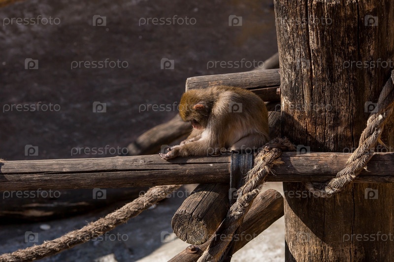 Японская снежная макака Нихонзару в Московском зоопарке