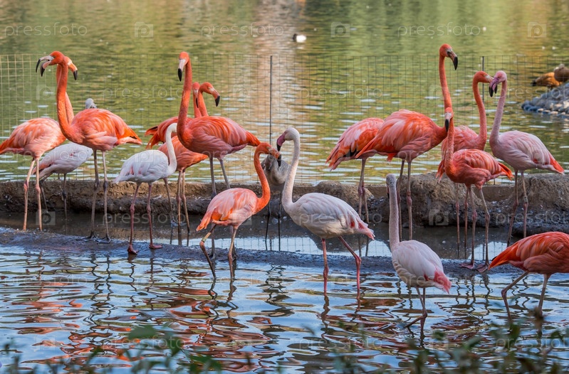 Птицы. Розовые и ярко-красные фламинго в Московском зоопарке