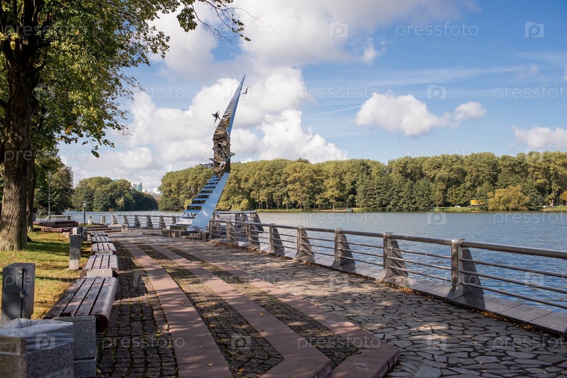 Скульптурная композиция "Дорога в будущее" на набережной Комсомольского озера в парке Победы в Минске. Республика Беларусь