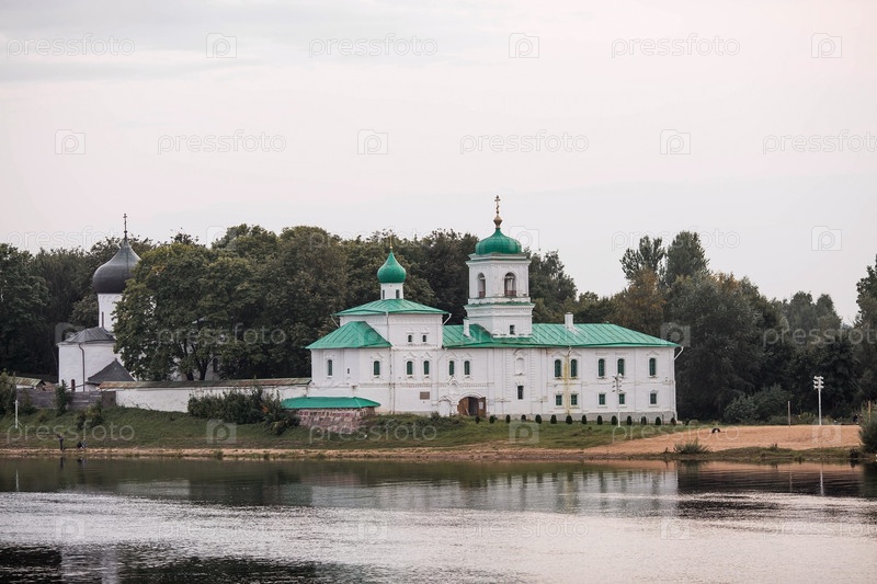 Спасо-Преображенский Мирожский монастырь. Пасмурное утро. Вид с другого берега. Россия город Псков