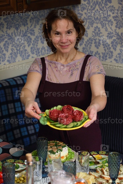 Женщина сервирует праздничный стол