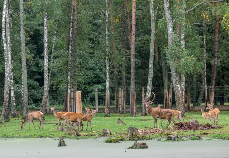 Олени осенью в Беловежской пуще. Республика Беларусь, 20 сентября
