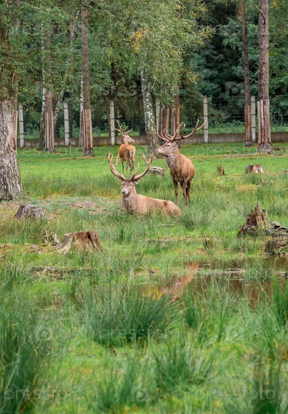 Олени осенью в Беловежской пуще. Республика Беларусь, 20 сентября