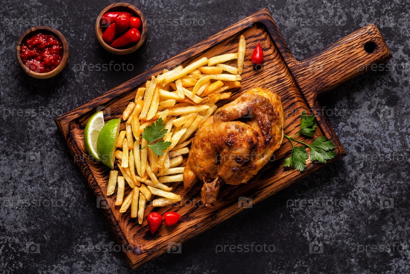 Половина жареного цыпленка Пири Пири с картофелем фри