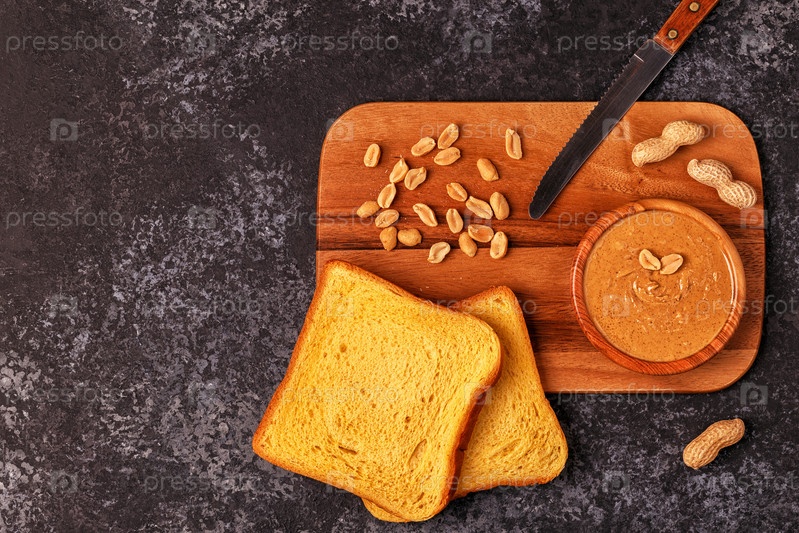 Чаша арахисового масла на деревянной доске