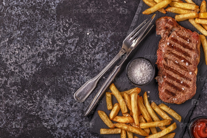Стейк барбекю из говядины с картофелем фри