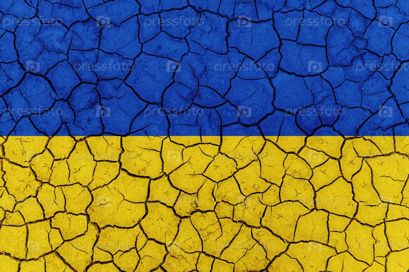 Флаг Украины на текстуре треснувшей сухой земли