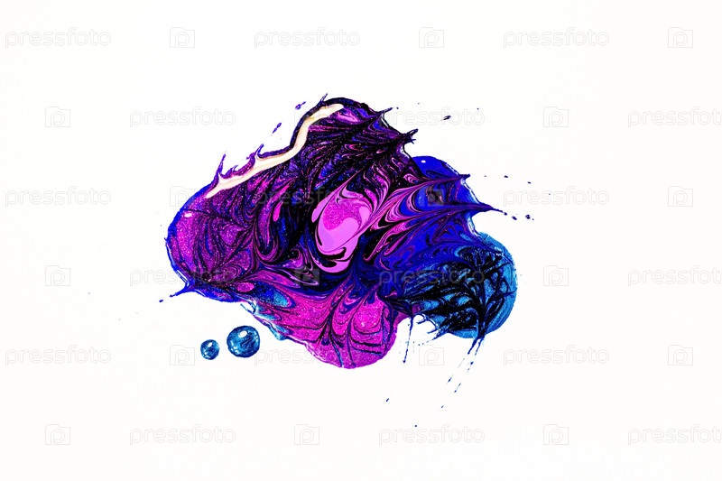 Плакат. Текстура лака для ногтей на изолированном белом фоне. Розовые, синие и фиолетовые тона. Абстрактный рисунок. Красивый арт-объект на стене