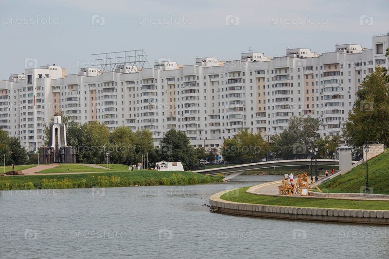 Набережная реки Свислочь в Минске. Вид на город Минск.Беларусь