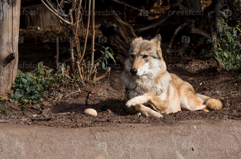 Портрет волка в естественной среде на природе. Крупный план животного. Московский зоопарк
