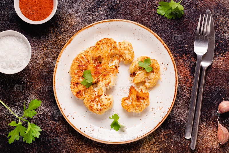 Стейк из цветной капусты со специями, приготовленный в духовке, вид сверху