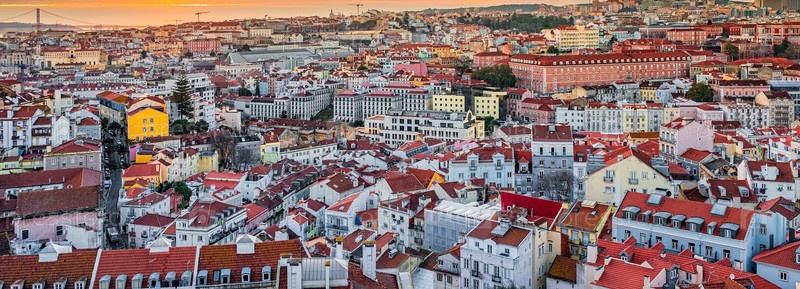 Красочный вид сверху на Лиссабон, Португалия