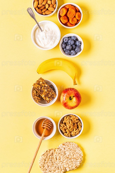 Концепция здорового перекуса, вид сверху