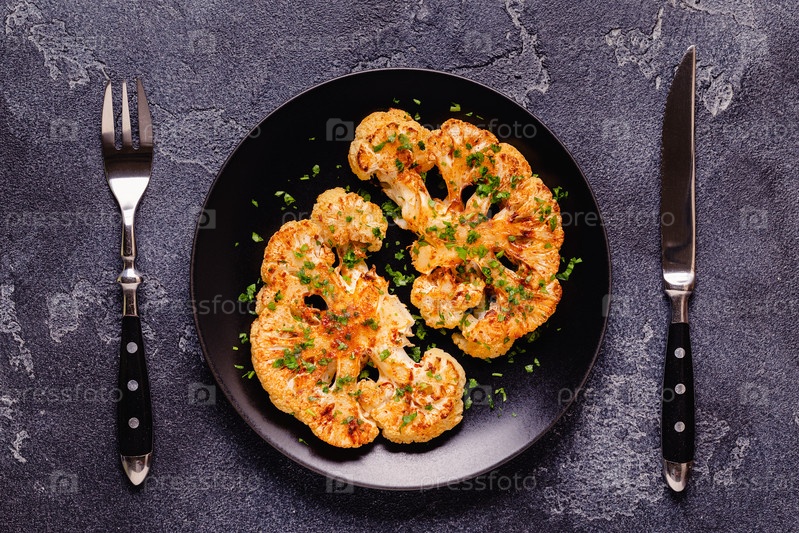 Стейк из цветной капусты со специями, приготовленный в духовке, вид сверху