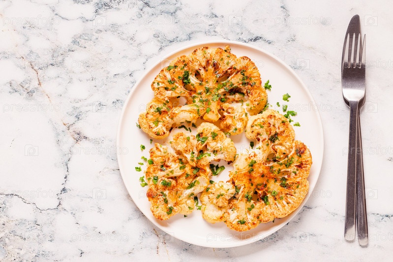 Стейк из цветной капусты со специями, приготовленный в духовке, вид сверху