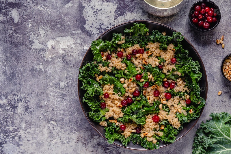 Здоровый салат из сырой капусты и киноа с клюквой и кедровым орехом