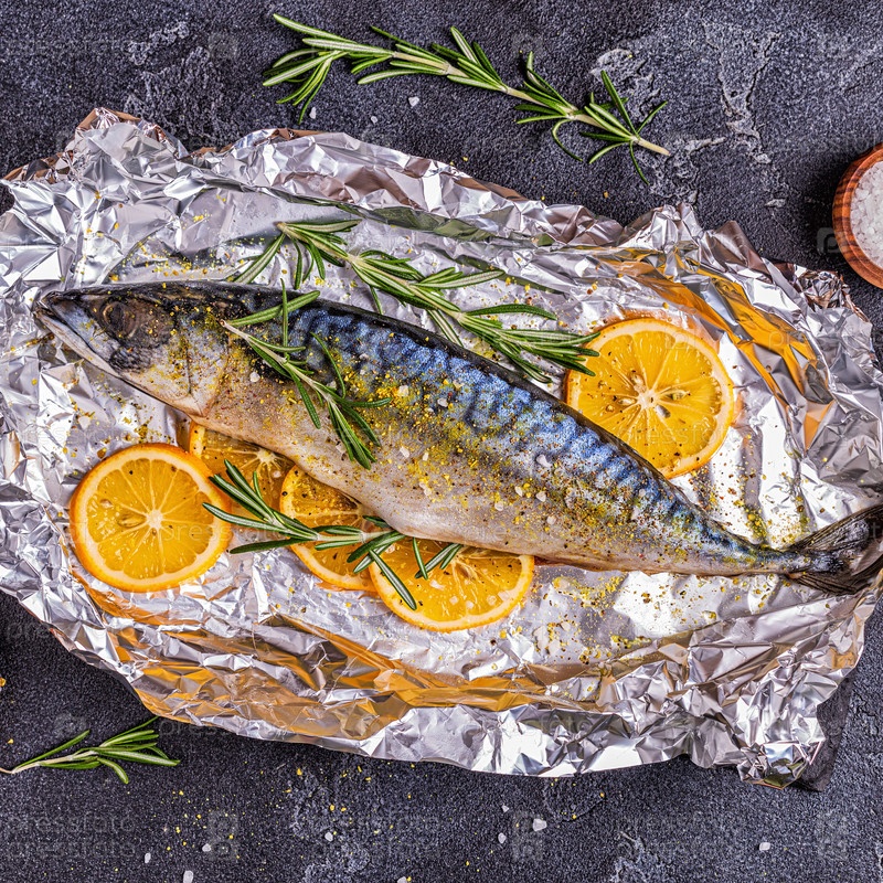 Сырая скумбрия со специями в фольге
