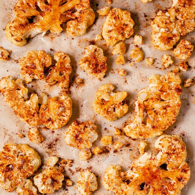 Стейк из цветной капусты со специями, приготовленный в духовке, вид сверху
