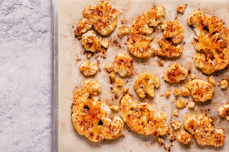 Стейк из цветной капусты со специями, приготовленный в духовке, вид сверху