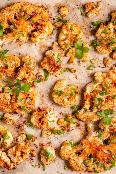 Стейк из цветной капусты со специями, приготовленный в духовке, вид сверху
