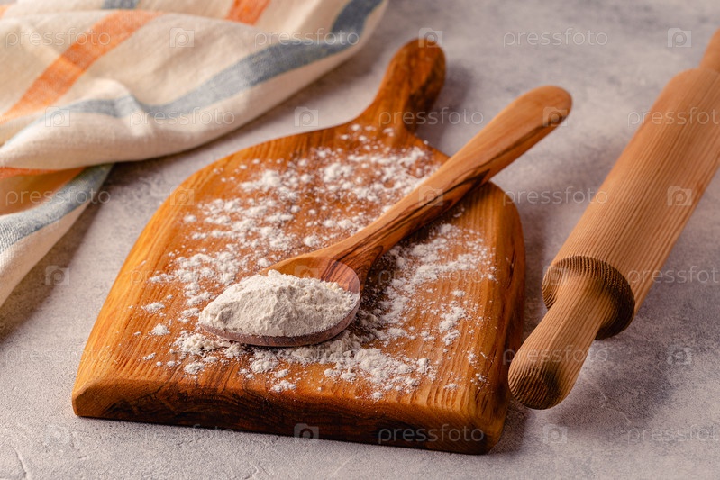 Ингредиенты для выпечки - мука, ложка, скалка