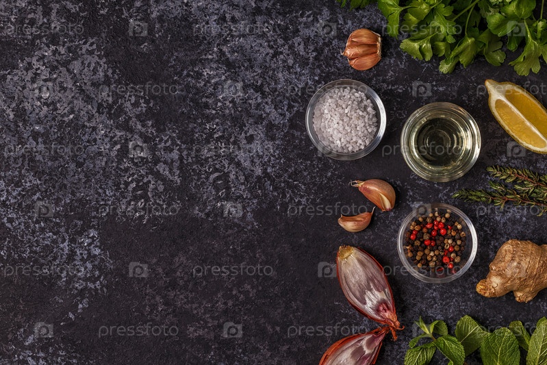 Фон со специями, травами и оливковым маслом