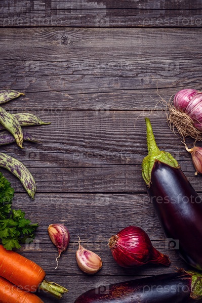 Свежие овощи для приготовления пищи на темном деревянном фоне с местом для текста