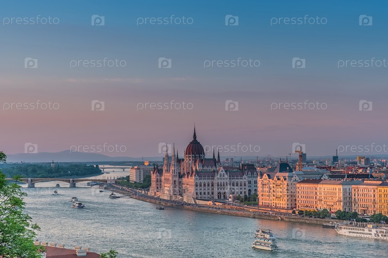 Панорама Будапешта на закате. Венгерские достопримечательности