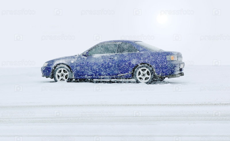 Синяя машина зимой