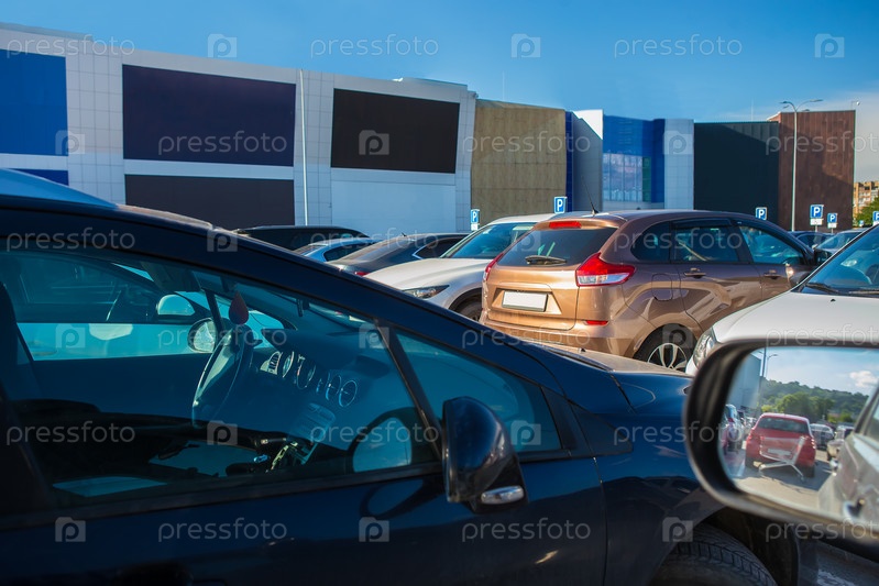 Автомобили на стоянке у торгового центра