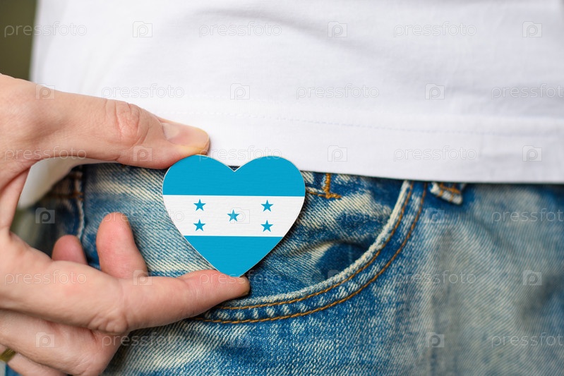Житель государства Гондурас! Деревянный значок с флагом Гондураса в форме сердца в мужской руке