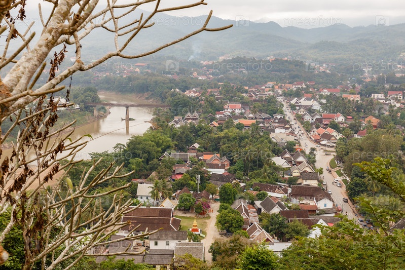 Вид на Луангпхабанг со смотровой площадки храма на горе Пхуси, Лаос