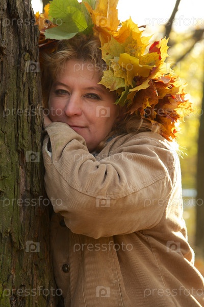 Грустная зрелая женщина возле дерева