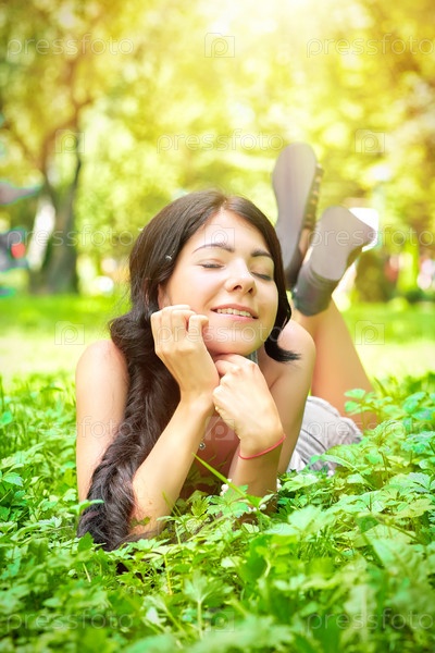 Счастливая девушка лежит