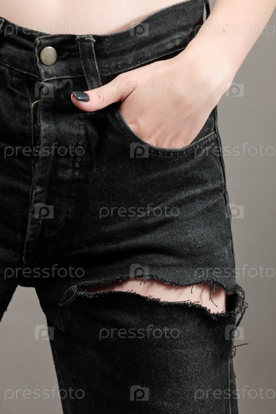 Рваные черные джинсы
