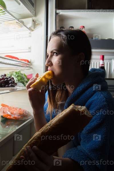 Женщина ест еду