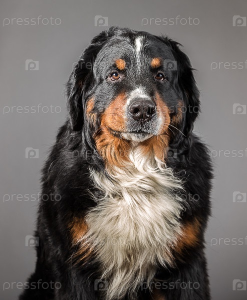Грустная собака на сером фоне