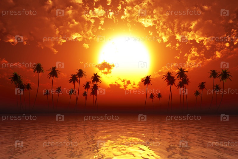 Красный закат над тропическим морем
