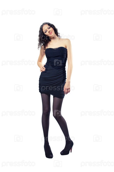 Молодая роскошная женщина в черном платье