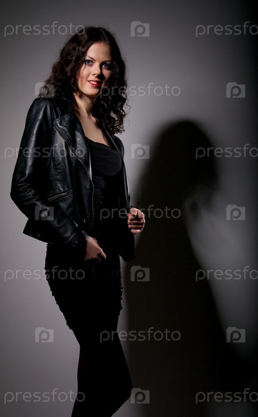Красивая девушка в кожаной куртке